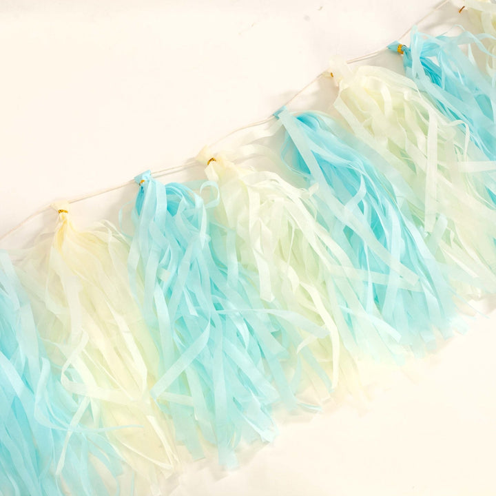 - (20) Extra-long 13" pre-cut tissue paper tassels in pastel blue and yellow (10 each)