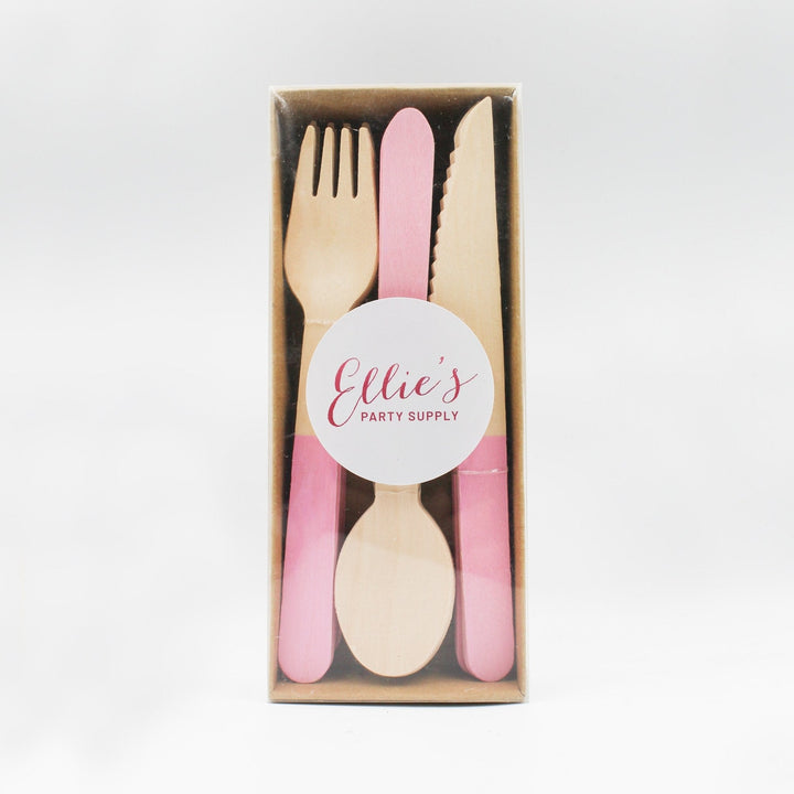 Crafted from eco-friendly wood with a pastel-pink dipped handle, each utensil feels modern, fresh, and totally party-perfect. They're sturdy enough for cake cutting, salad serving, or snack grazing — and disposable for the easiest cleanup ever.