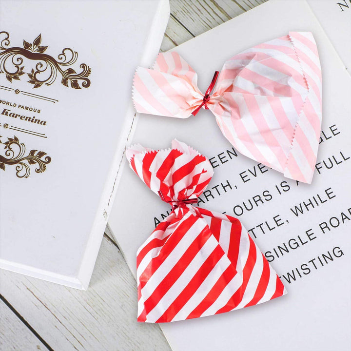 Each 12 pack includes a variety of red and pink bags with white stripes or polka dots. 💗